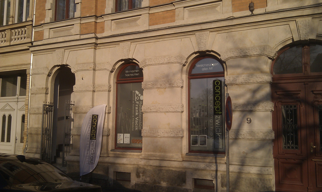 Die Geschäftsräume von concept-zwickau Versicherungsmakler GmbH finden Sie im Römerplatz 9 in 08056 Zwickau und als Hilfe unter der Rubrik Anfahrt